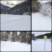 Ab dem Schild „Loipe nicht gespurt“ ist gewalzt aber halt nicht mit Maschinenschnee bedeckt. Durchaus fahrbar aber nicht „mängelfrei“. Hier können die Miesepeter ihre Fotos machen, die beweisen, dass es nicht gut zum Langlaufen geht. Aber Ihr wisst jetzt ja Bescheid