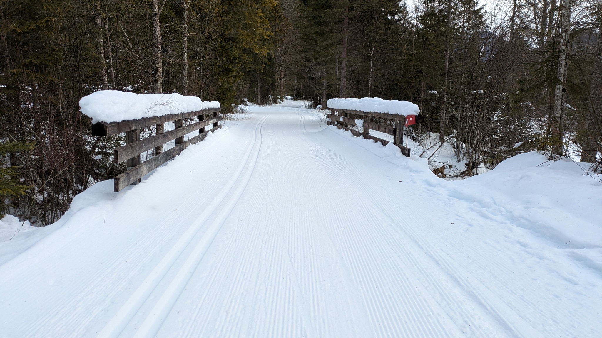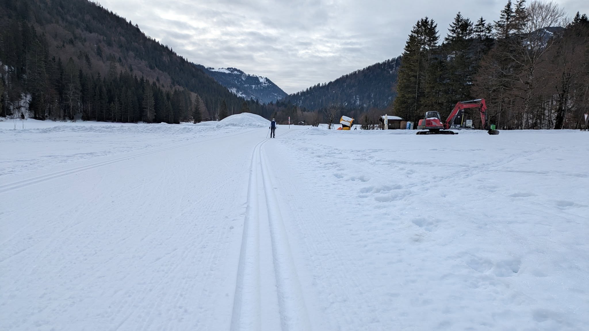 Die Verhältnisse sind aus meiner Sicht gerade ideal ab Parkplatz Stocker/Schweres Gatter. Super kompakt aber nicht eisig und sehr griffig. Es hat überall mehr als genügend Schnee auf den Loipen und es pfeift Vollgas dahin. Ab und an findet man noch Blätter in der Spur vom Föhnstürmchen.
