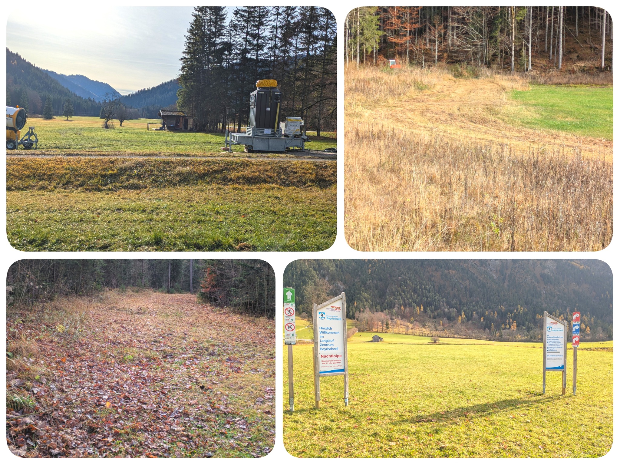 Das wichtigste zuerst! Es gibt ab sofort einen Schneeerzeuger bei Jennys Loipenhütte / Parkplatz Stocker (Bild links oben). Dieser soll den Loipeneinstieg sichern und den Zugang zum Bayrischzeller Gletscher, dem Klooaschertal, dauerhaft möglich machen. Das hört sich jetzt einfach an, war aber tatsächlich ein Prozess über mehrere Jahre. Eine tolle Investition der Gemeinde.