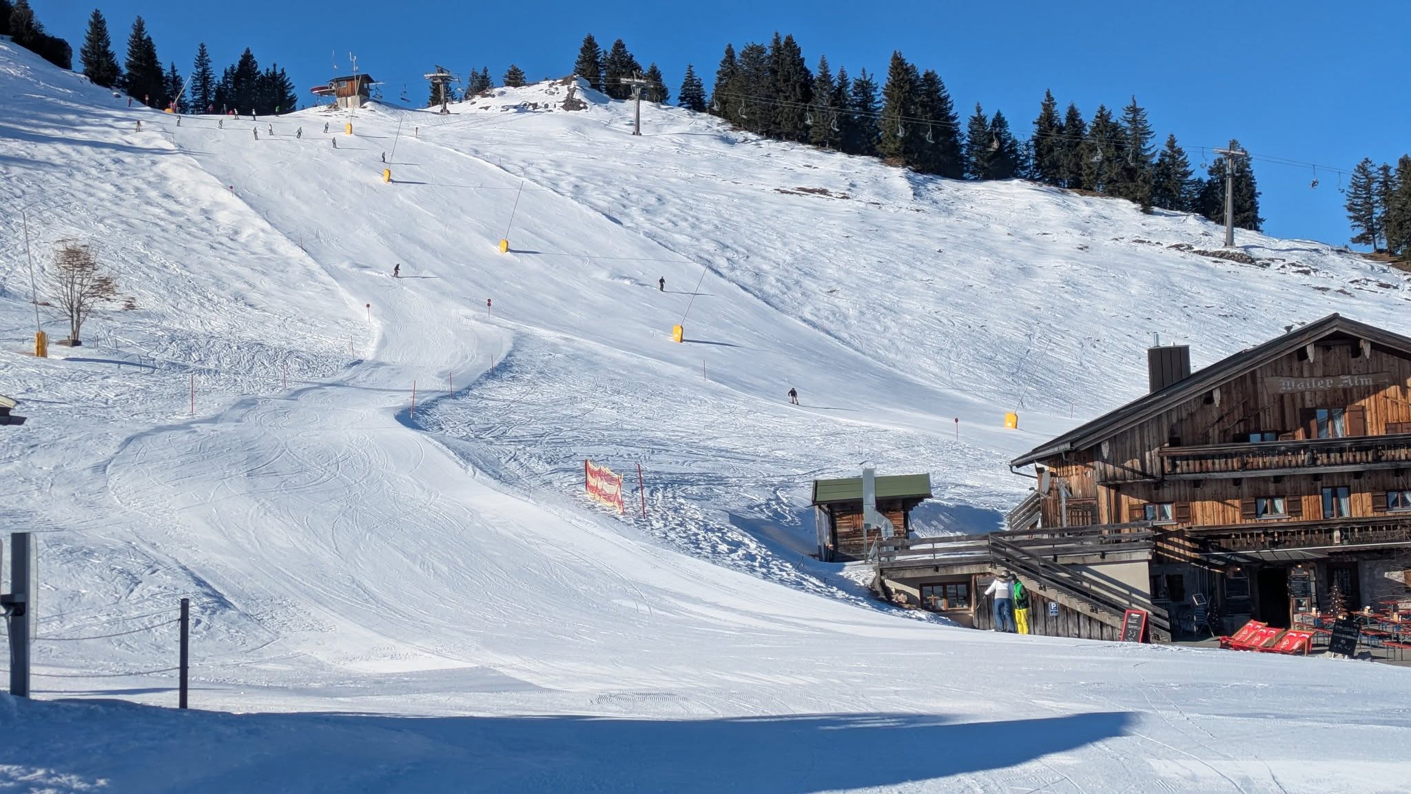 Einen besseren Tag kann man sich nicht wünschen. Um die 0Grad, strahle blauer Himmel (wie jeden Tag, gefühlt seit Wochen) und beste Pistenverhältnisse!!!! Es ist extrem griffig bei super kompakter Piste. Alle Pisten sind ausreichend breit. Zum Pistencarven eine Schau! Der Betrieb ist unter der Woche überschaubar. Es gibt allerdings viele Zwergerlskikurse, was ja positiv ist. Die erfordern halt Aufmerksamkeit. Auch die schwarze Rosengasse ist in Betrieb und ist bestens zu fahren.